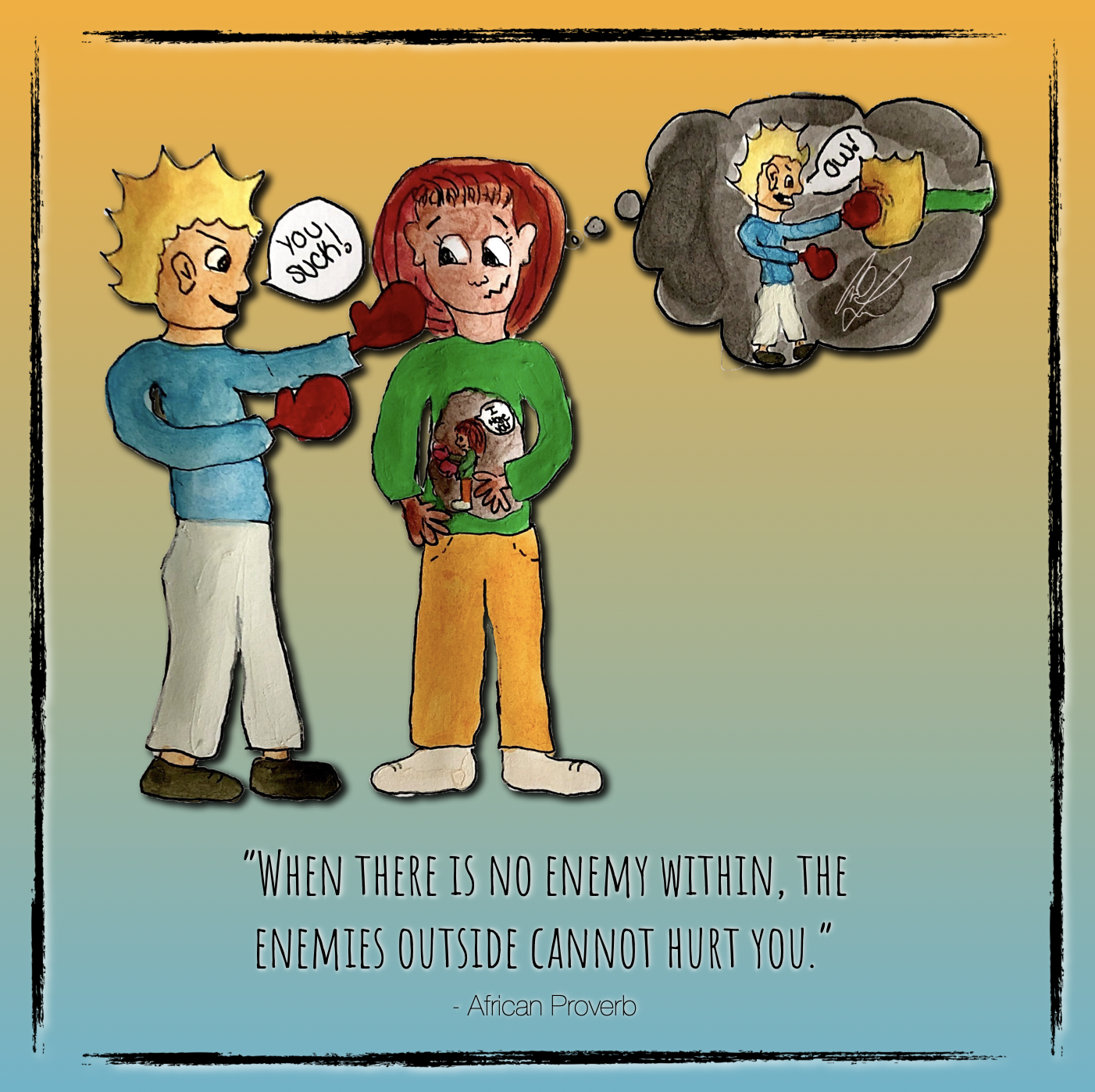 Whimsical doodles made with a combination of cartoon, water color, and digital art. Pairing light-hearted drawings with famous pensive quotes to provide alternative tone & perspective. This project is still in production - still to come: stickers, & flip book.